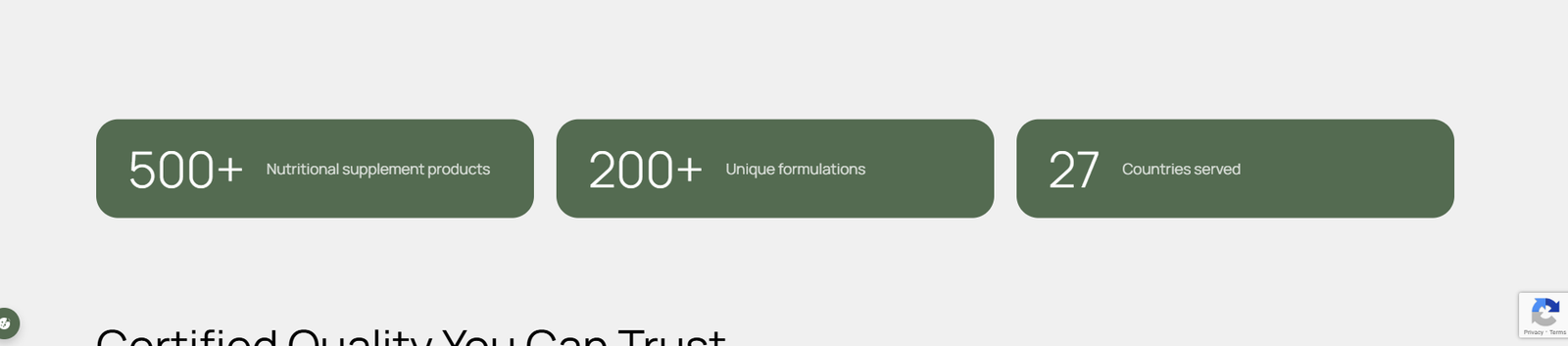Our facility is cGMP certified and FDA registered. We maintain the highest quality standards with comprehensive quality management systems, microbiological testing, and strict adherence to all regulatory requirements.